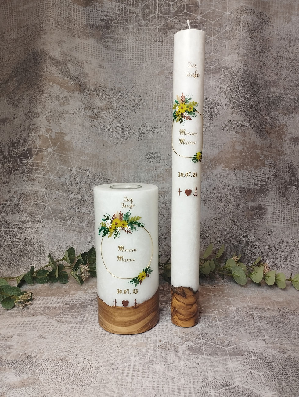 Taufkerze Lea Marie Blumen